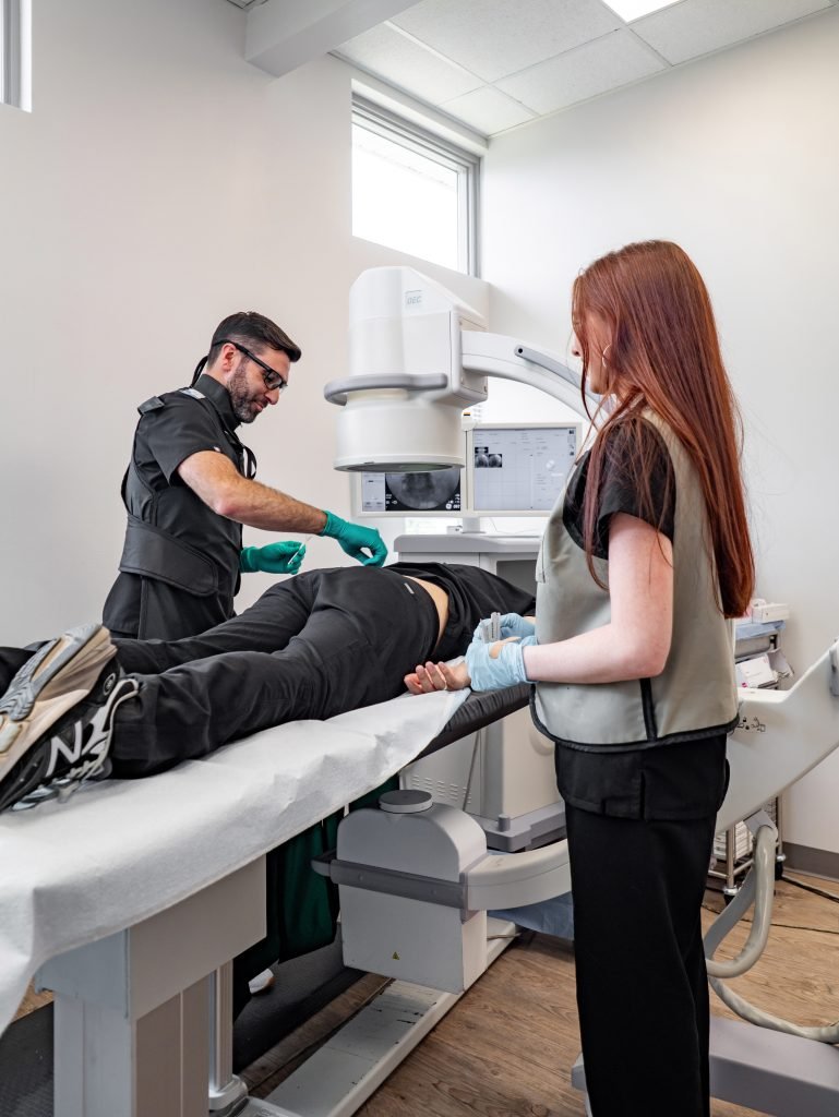 Ultrasound or x-ray guided injections of pain-blocking medications for treatment of localized tendon pain & tendon-related conditions.